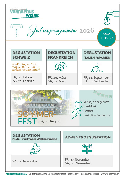 Zusätzlich zu diesem Programm finden regelmässig kleinere Samstags-Degustationen statt.